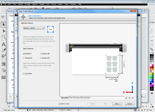 - The cutter will scan for all registration marks using ARMS, moving across the sheet to confirm their locations.[1]