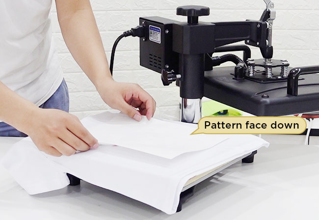 - Cover with a non‑stick sheet or parchment to protect both shirt and upper platen.